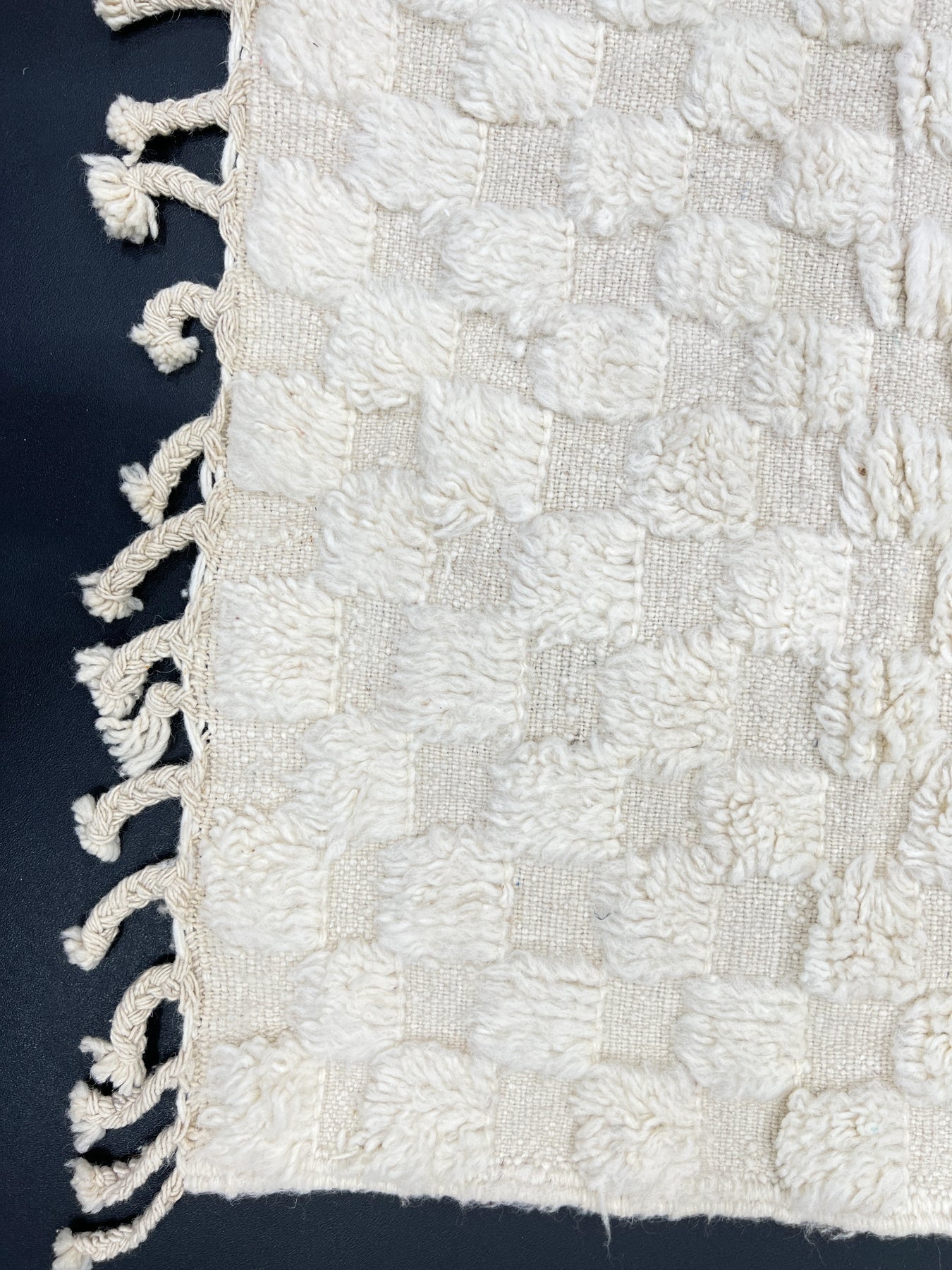 Add timeless elegance to your space with this White Textured Moroccan Rug, a luxurious handmade wool carpet crafted by Berber artisans in the Atlas Mountains. Woven from 100% natural sheep wool, this rug features a soft raised checkered pattern that brings depth, texture, and warmth to any interior.