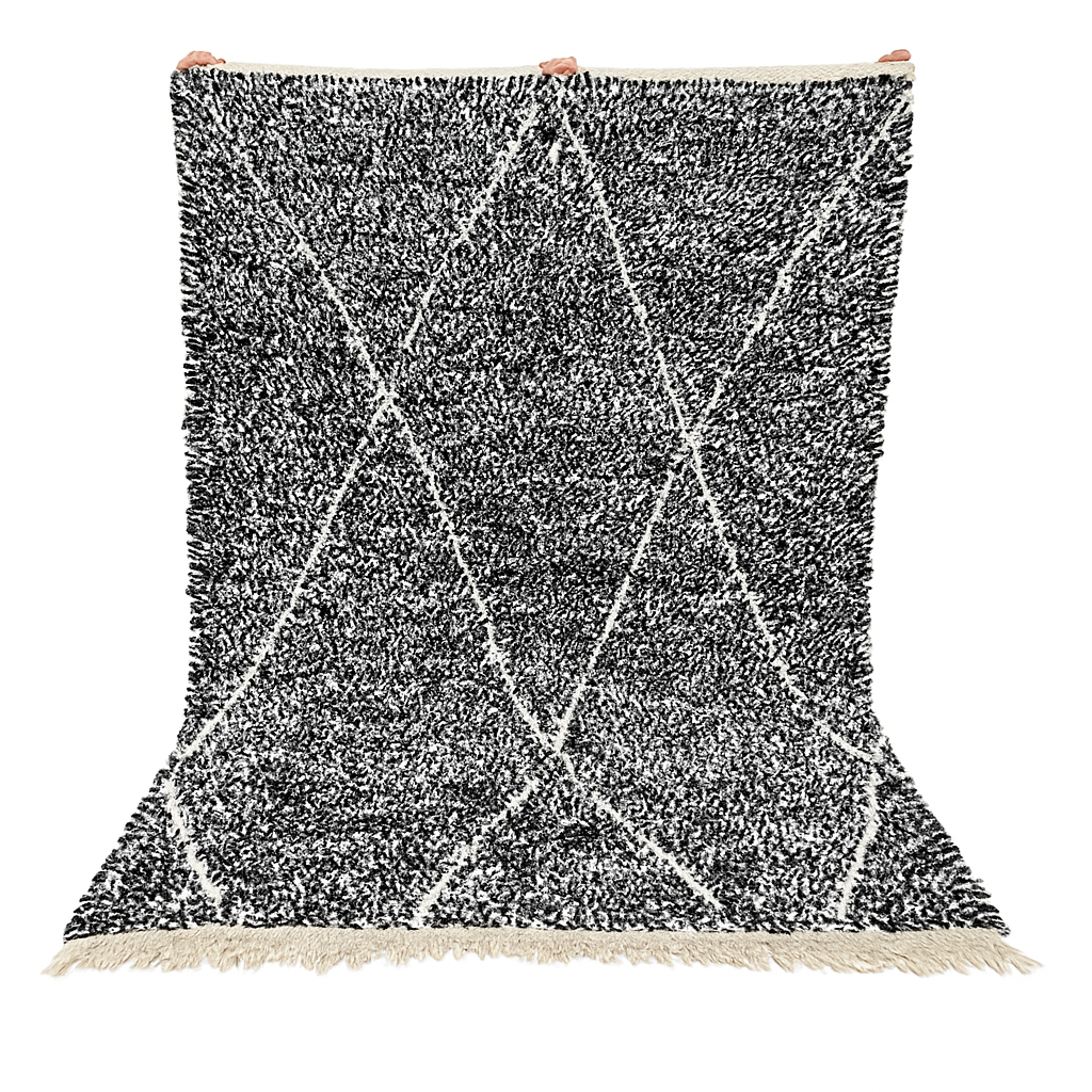 Make a bold statement with this Black Moroccan Rug, a luxurious handmade wool carpet crafted by Berber artisans in Morocco’s Atlas Mountains. Hand knotted from 100% natural wool, this rug showcases a rich black base enhanced with minimalist Berber line motifs or subtle geometric accents — embodying both tradition and contemporary style.
