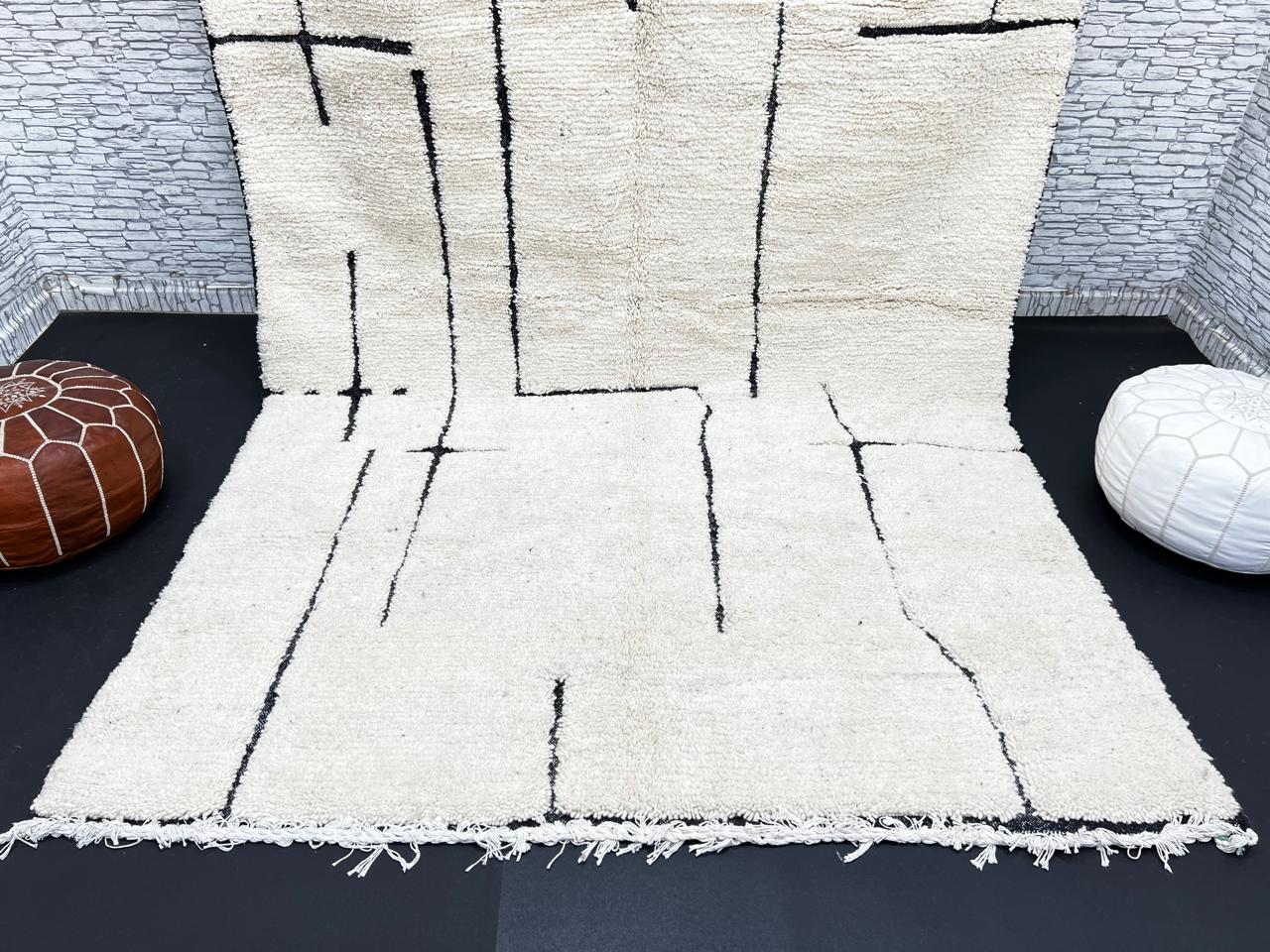 Ivory and Black Abstract Line Moroccan Wool Rug – Handmade