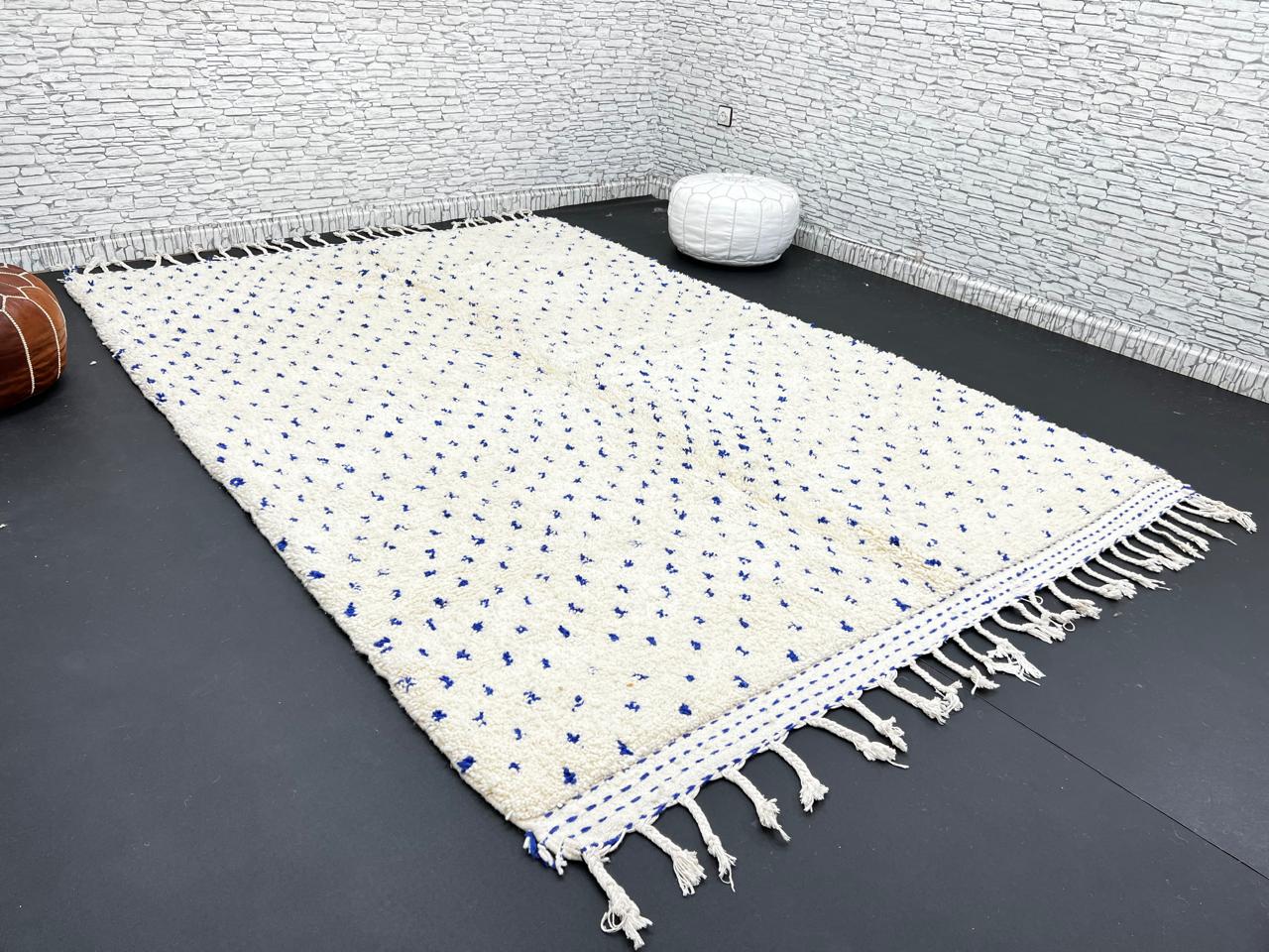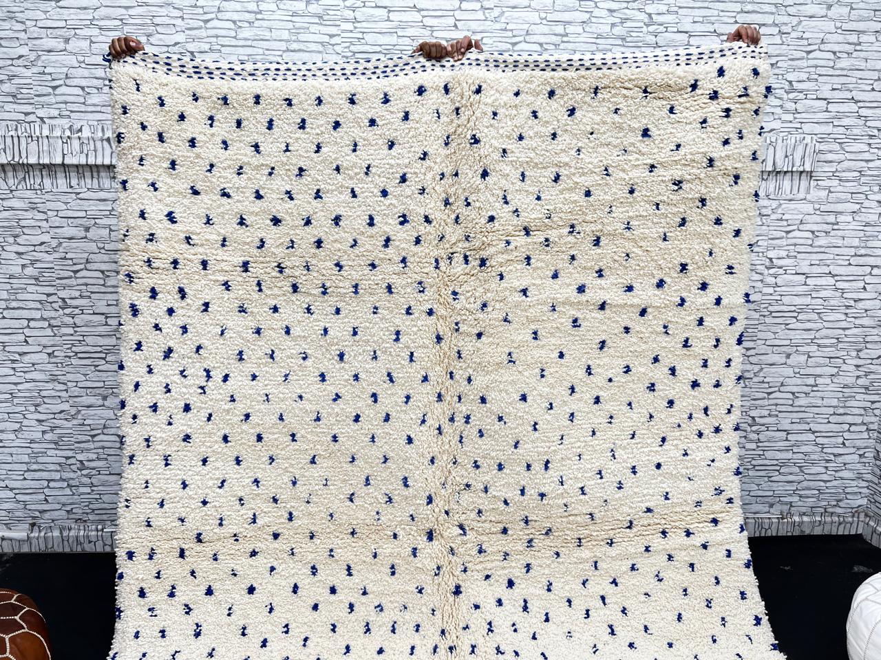 Ivory Blue Dotted Moroccan Wool Rug ā Handmade Berber Carpet