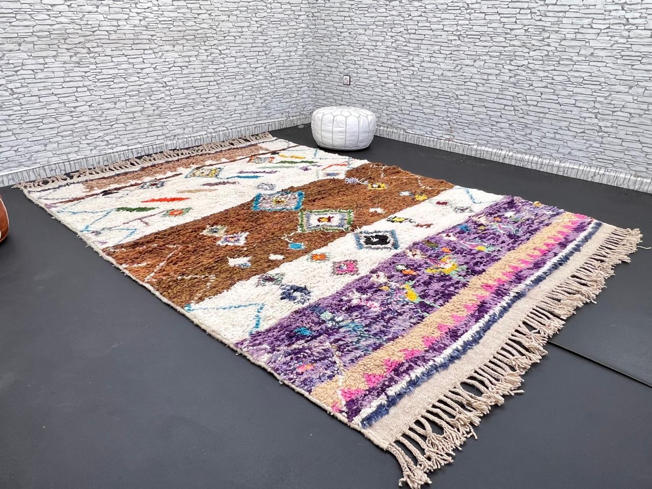 Exclusively available in our collection, this authentic Moroccan rug is a work of art, crafted entirely from 100% natural wool. A perfect fusion of traditional craftsmanship and luxury, each rug is a testament to the skills of Moroccan artisans.