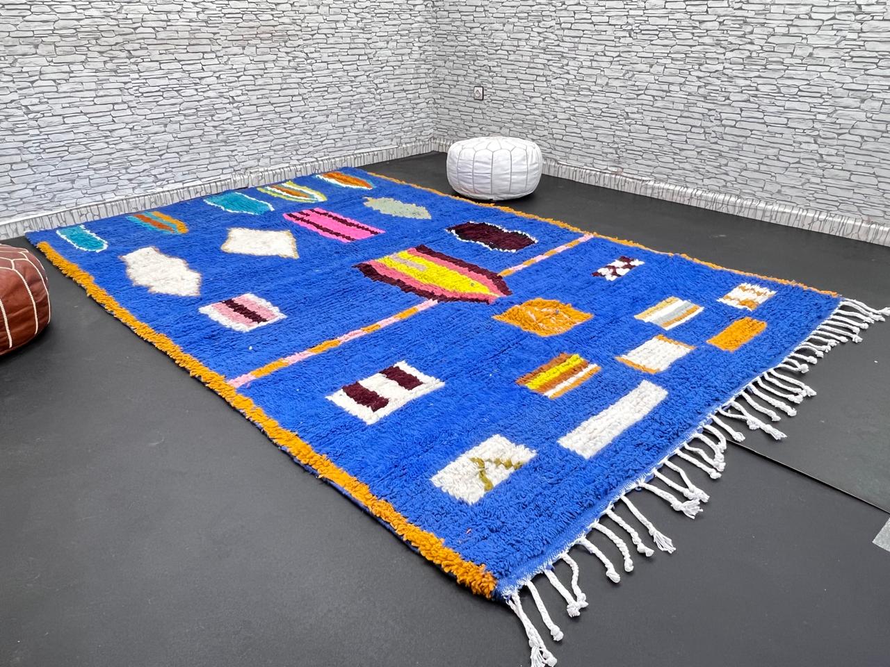 Make a bold yet refined statement in your space with this stunning Blue Moroccan Wool Rug, a contemporary interpretation of traditional Berber artistry. This rug blends ancient hand-weaving techniques with a fresh, modern design language — creating a piece that feels both timeless and forward-thinking.