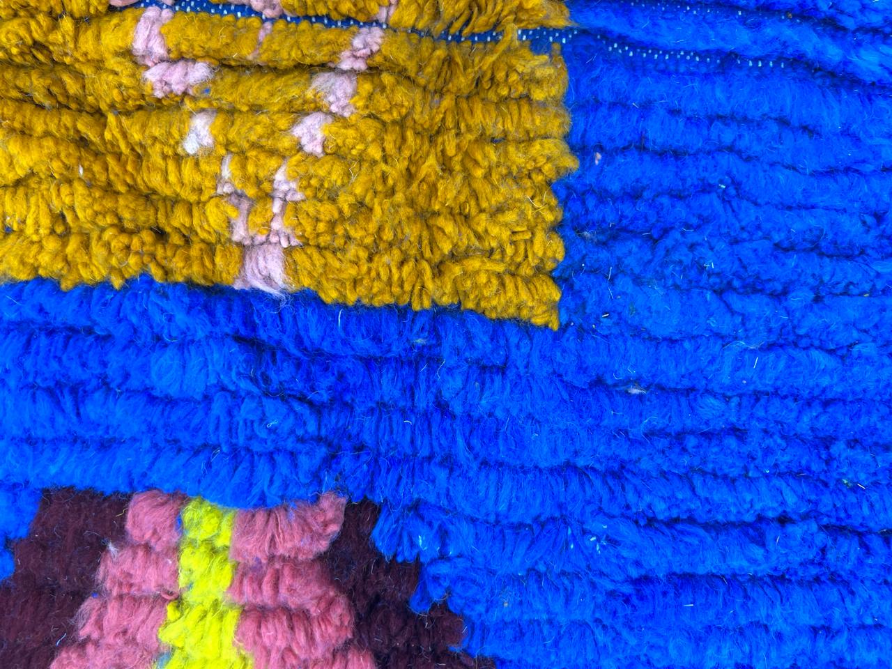 Woven from 100% natural Moroccan wool, the rug features a plush, medium-high pile that is luxuriously soft underfoot while remaining durable enough for everyday living. Its bold color and minimalist abstract pattern make it ideal for modern interiors, creative spaces, and design-led homes that value originality and craftsmanship.