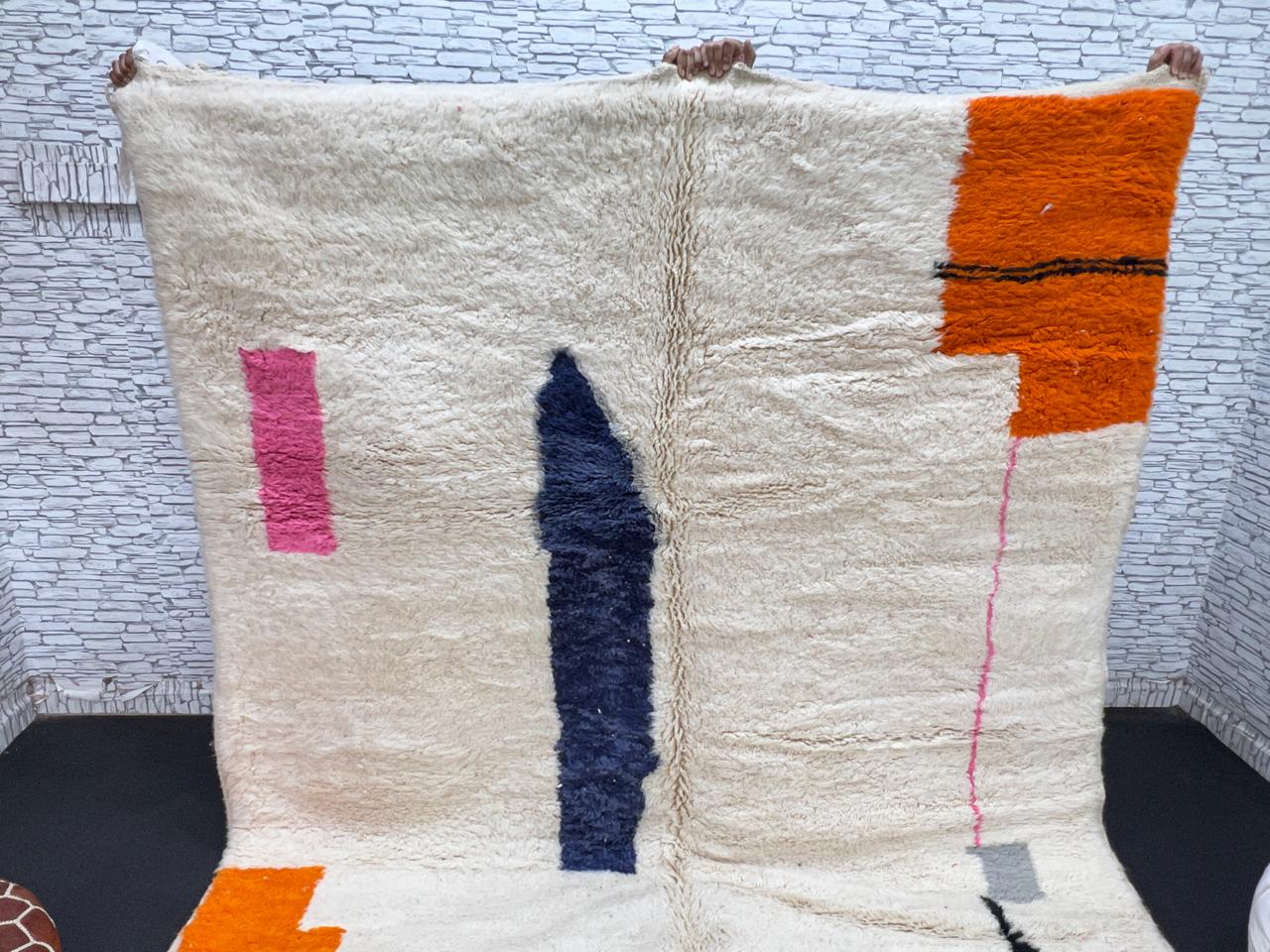 Exclusively available in our collection, this authentic Moroccan rug is a work of art, crafted entirely from 100% natural wool. A perfect fusion of traditional craftsmanship and luxury, each rug is a testament to the skills of Moroccan artisans.