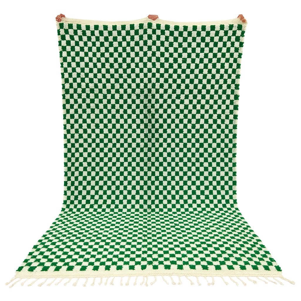 Make a bold statement with this Green and White Checkerboard Moroccan Rug, a handmade masterpiece that blends traditional craftsmanship with modern style. Woven from 100% natural wool by Berber women in the Atlas Mountains, this rug features a timeless checkerboard pattern that adds a fresh, contemporary edge to any room.