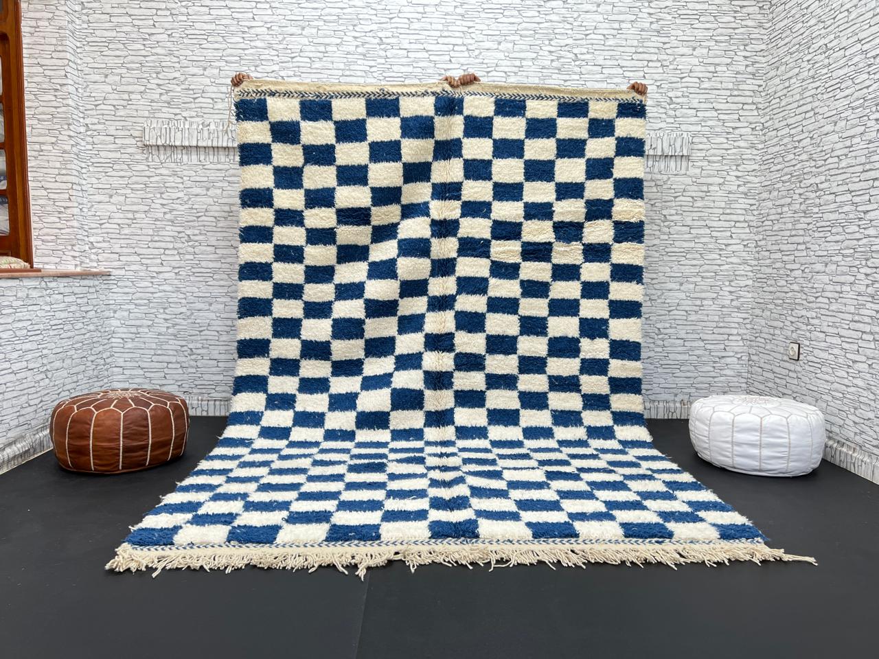 Bring Moroccan craftsmanship into your home with this Blue and White Checkered Moroccan Wool Rug, handwoven by skilled Berber artisans using 100% natural sheep wool. Its modern checkerboard pattern in deep blue and ivory adds a vibrant yet timeless touch to any space ā perfect for those who love the fusion of minimalist design and Moroccan tradition.