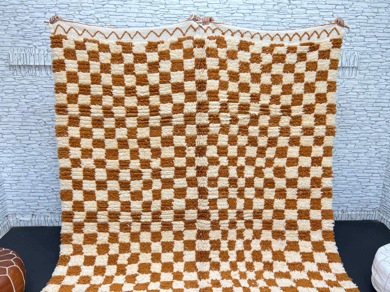 Mustard Checkered Moroccan Wool Rug – Handmade Berber Carpet