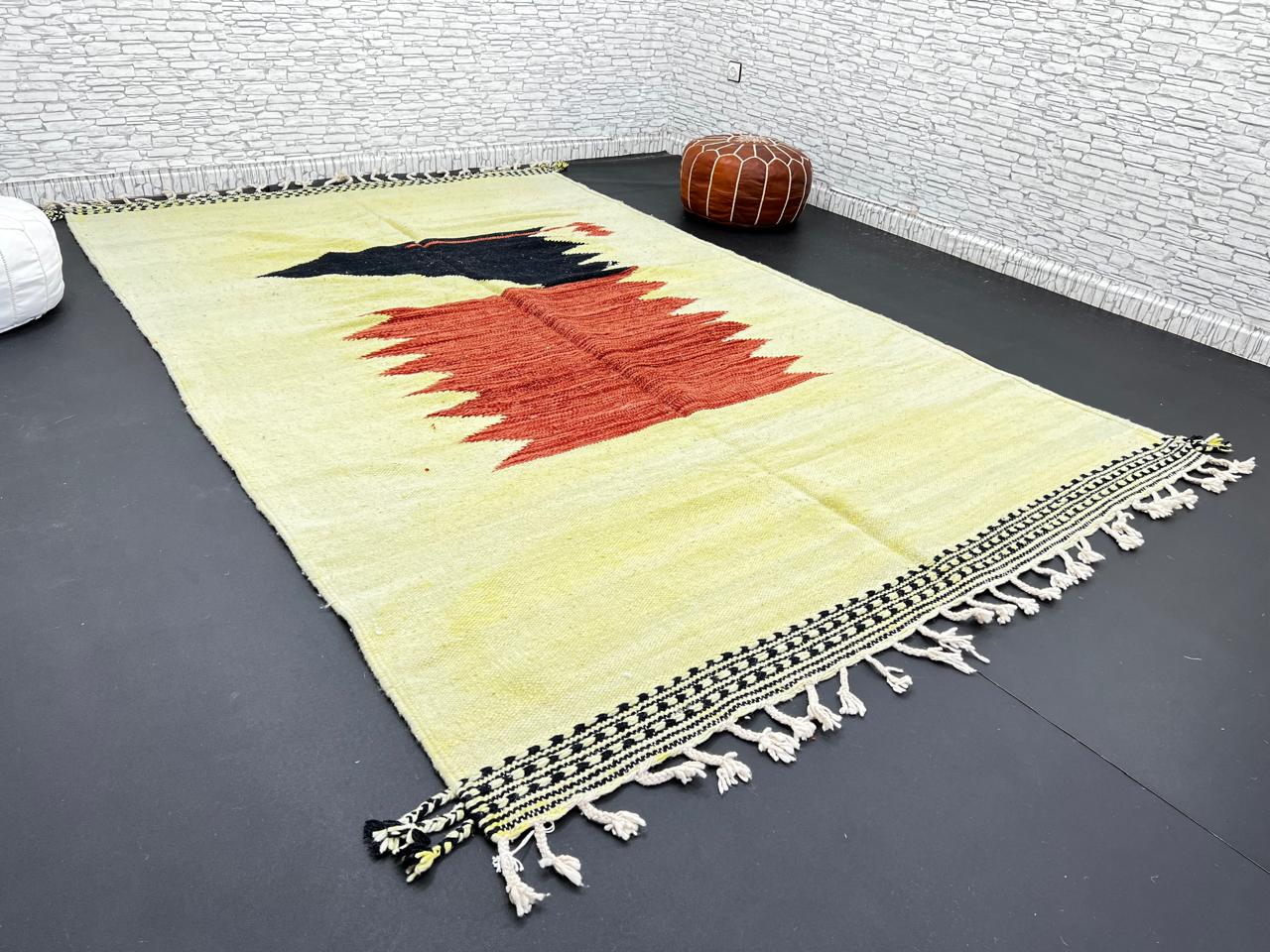 Handmade Moroccan Wool Rug ā Yellow Red and Black Flatweave Carpet