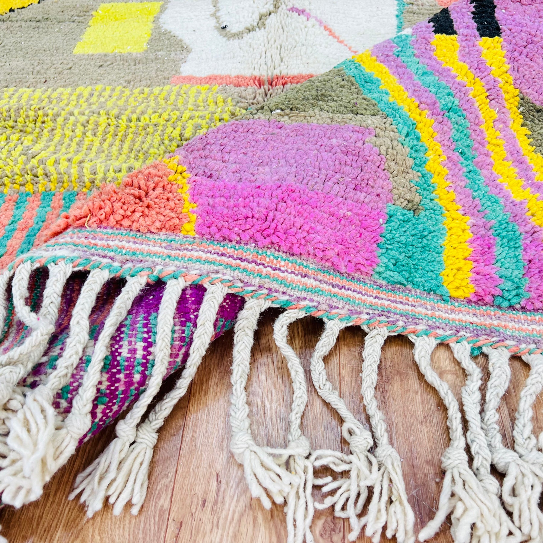 Each section feels like its own visual story, handwoven by Berber women using traditional methods and soft wool. This artistic rug is perfect for modern, playful, or bohemian interiors.