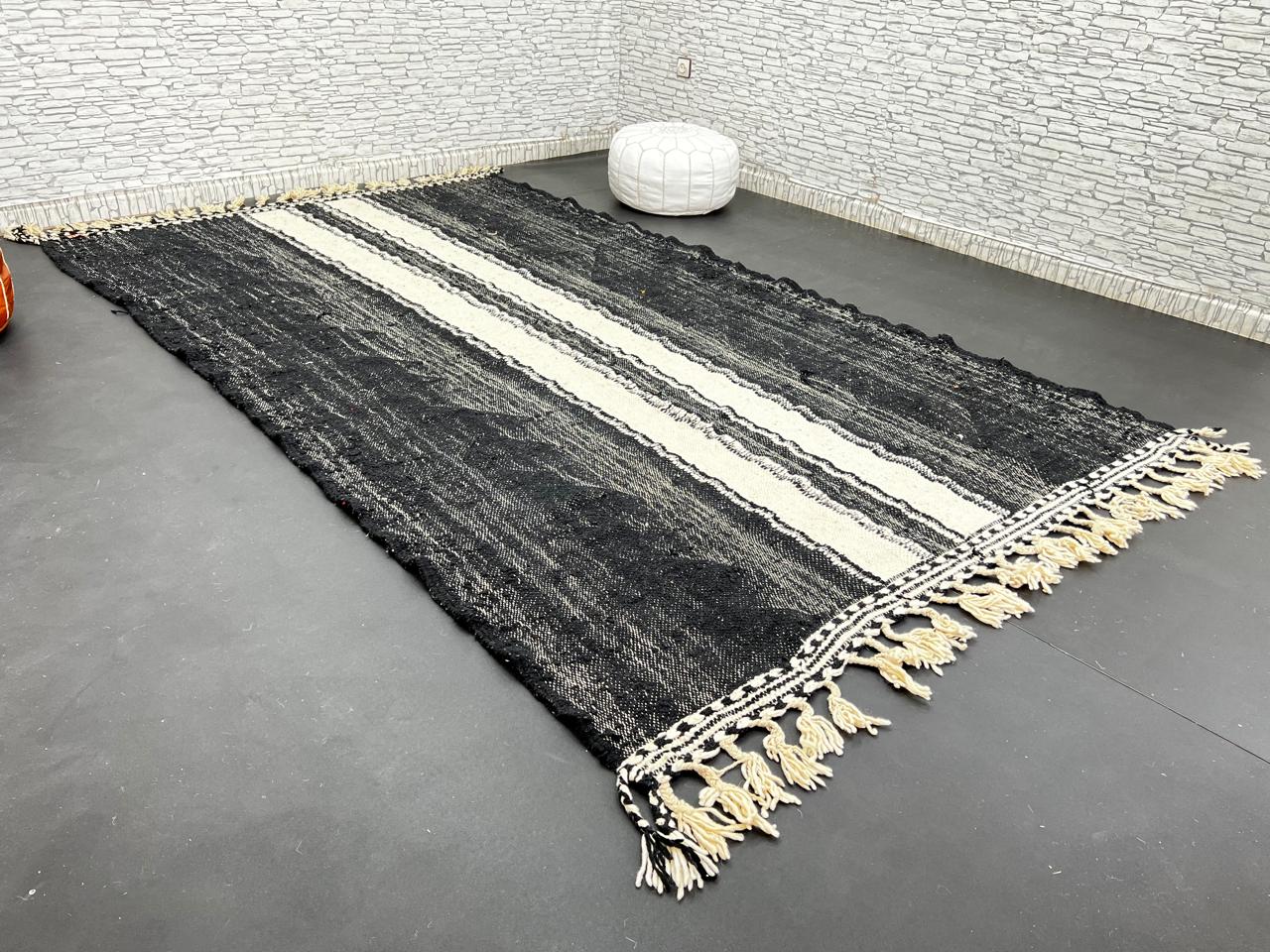 Black and White Moroccan Wool Rug – Handmade Striped Beni Ourain Carpet