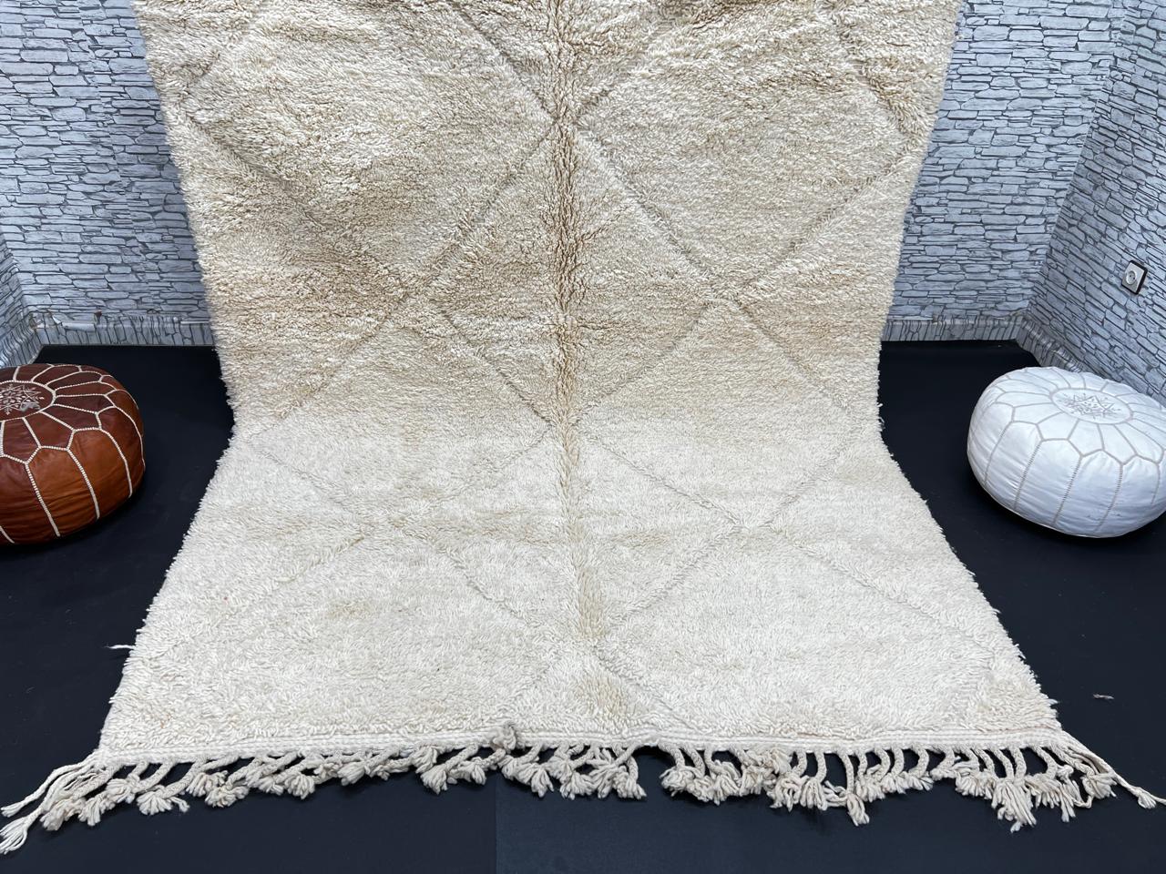 Cream White Beni Ourain Moroccan Wool Rug – Handmade Berber Carpet