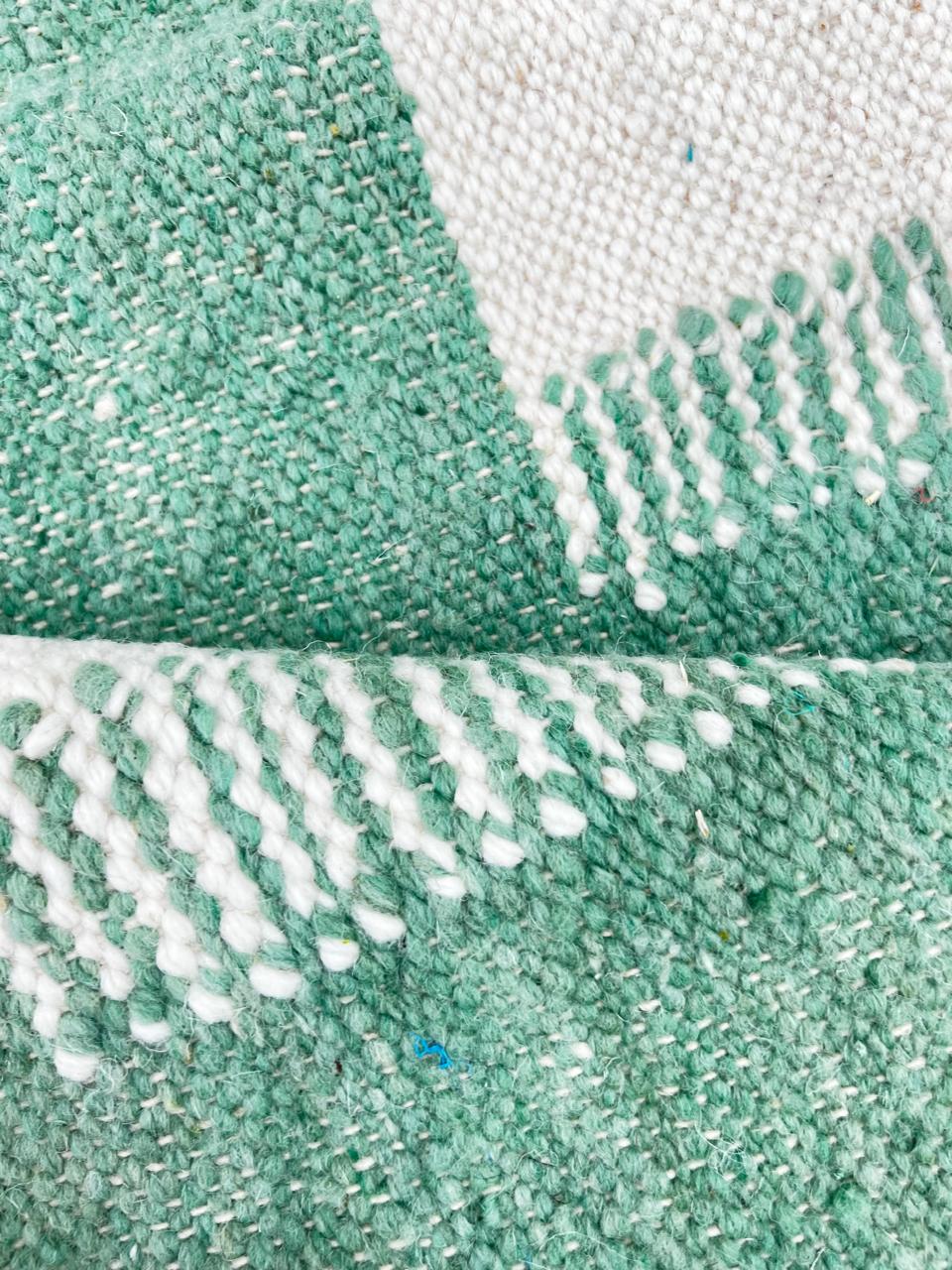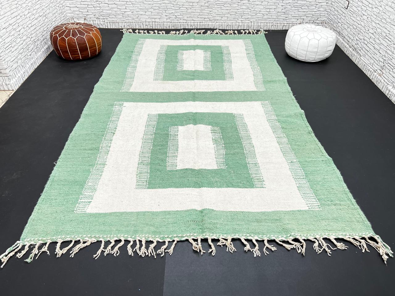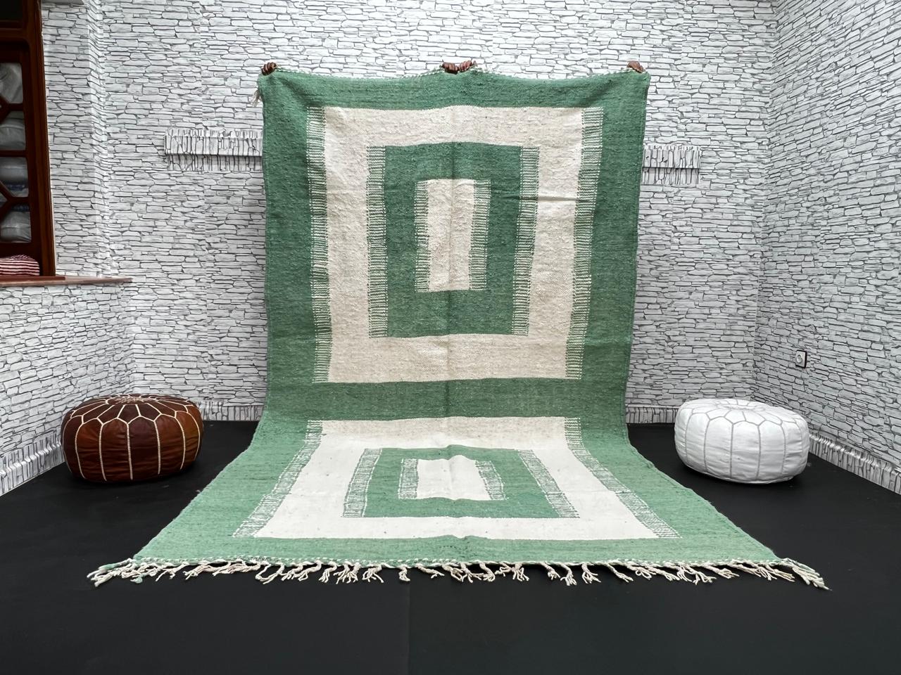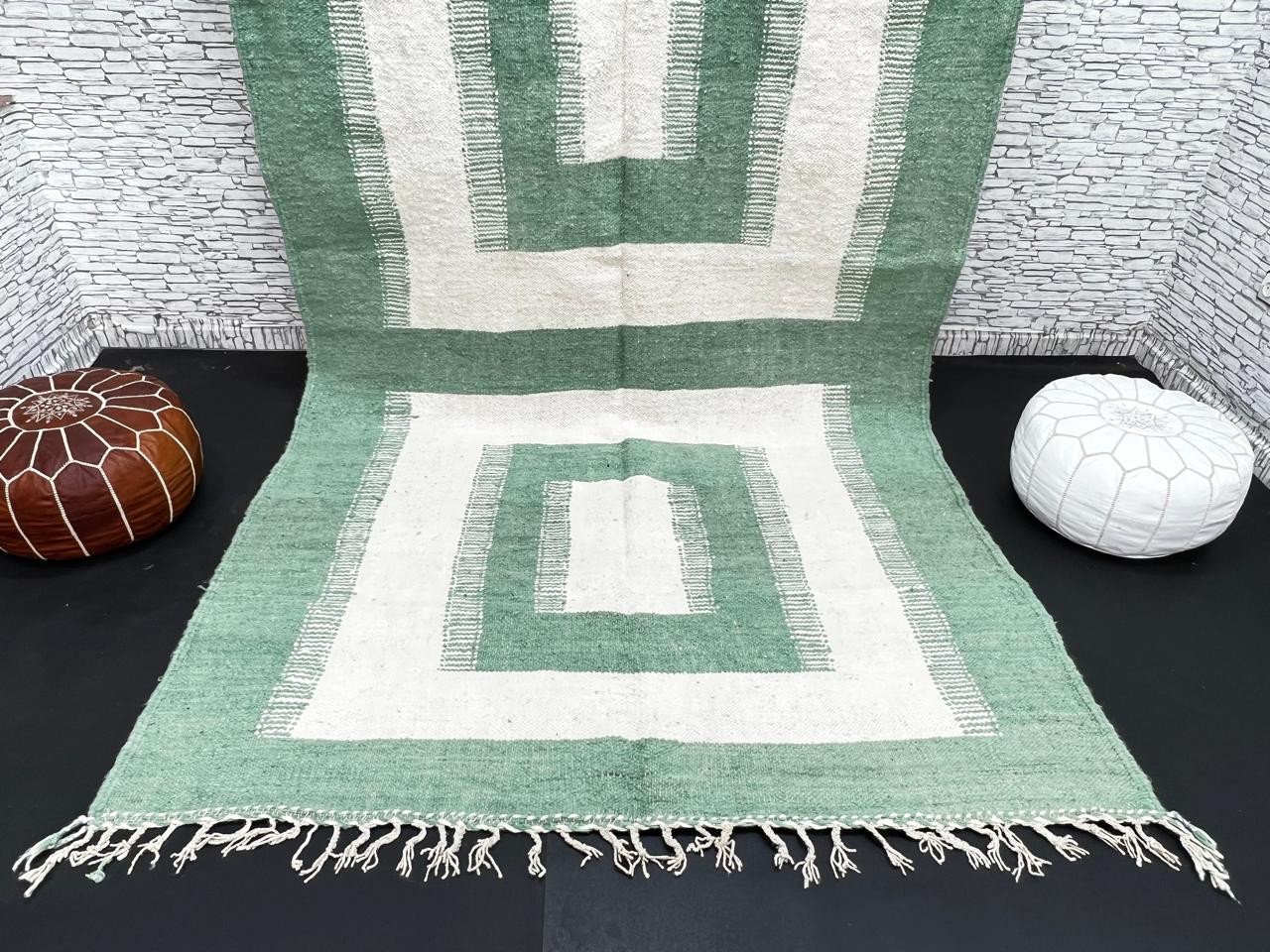 Green & Cream Moroccan Wool Rug – Handmade Flatweave Berber Carpet