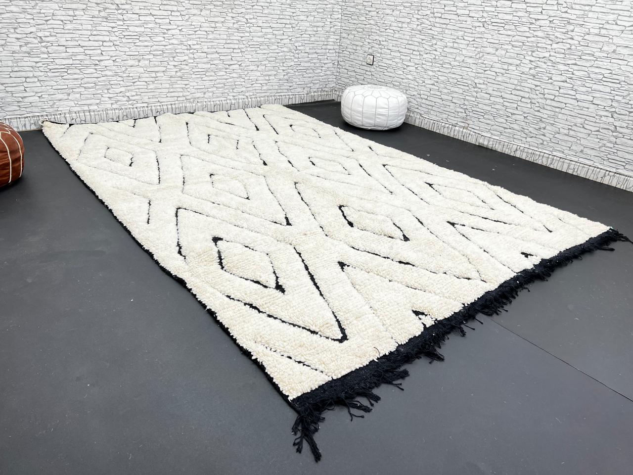 Ivory and Black Moroccan Wool Rug – Handmade Beni Ourain
