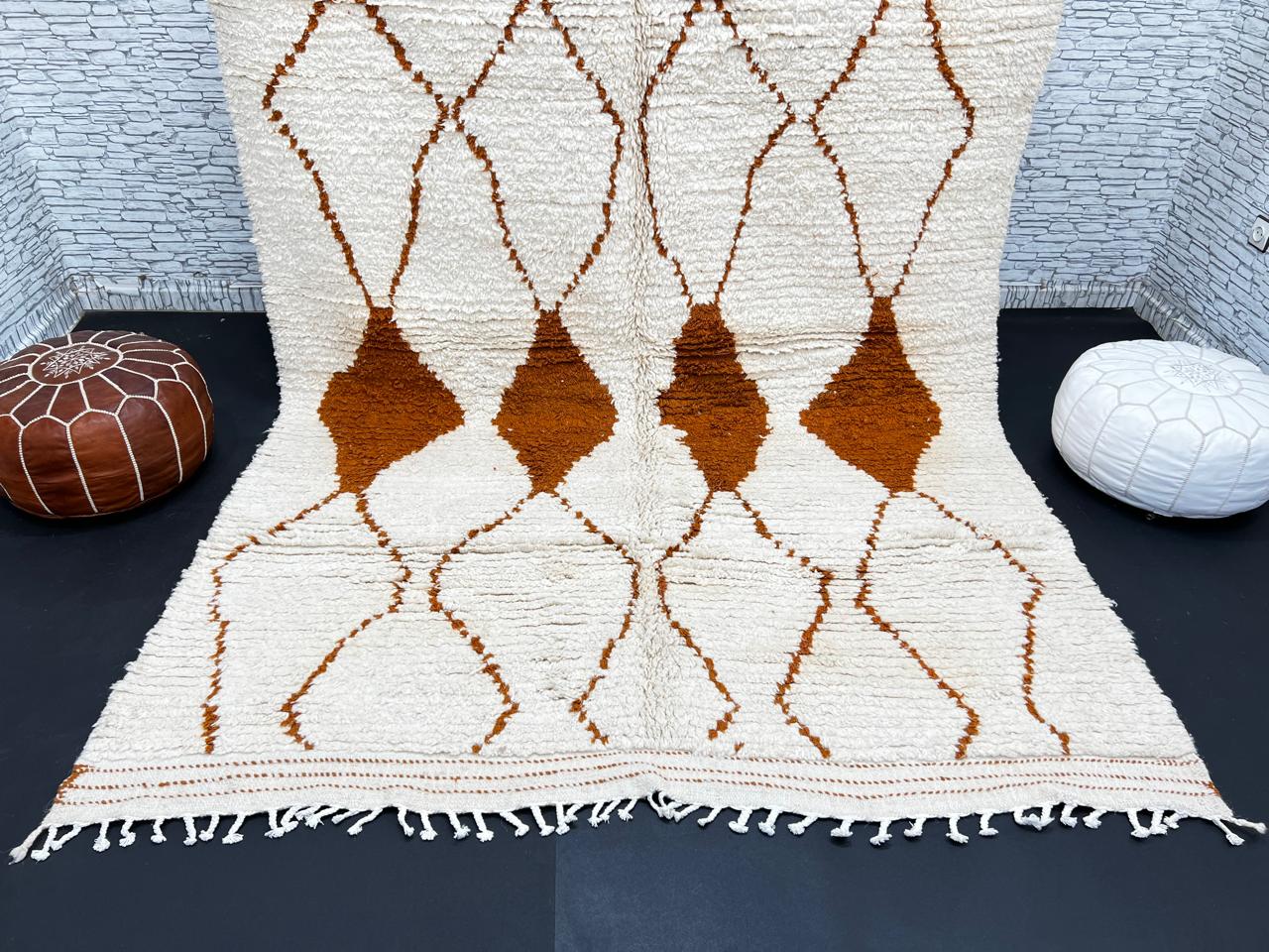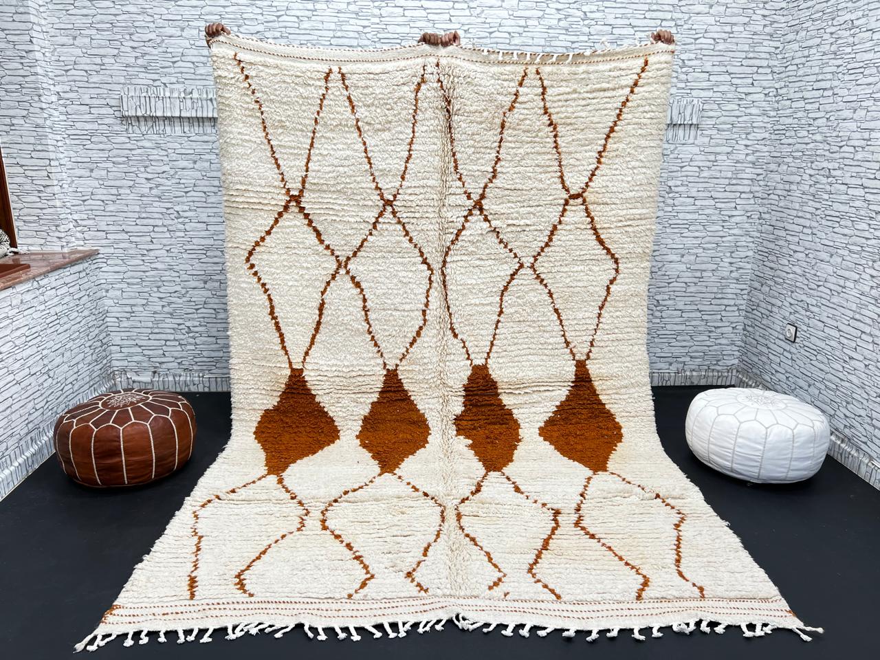 Ivory Terracotta Diamond Moroccan Wool Rug – Handmade Beni Ourain