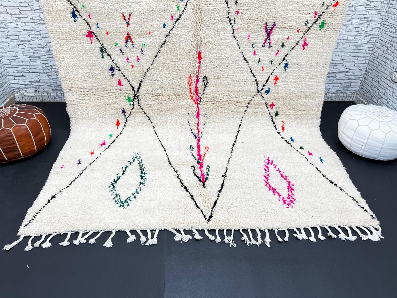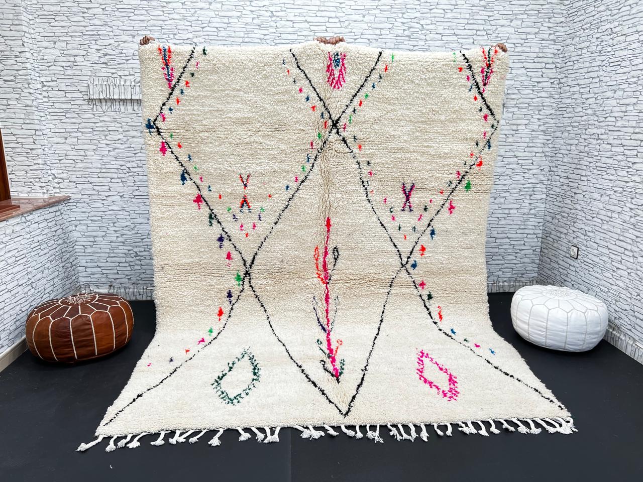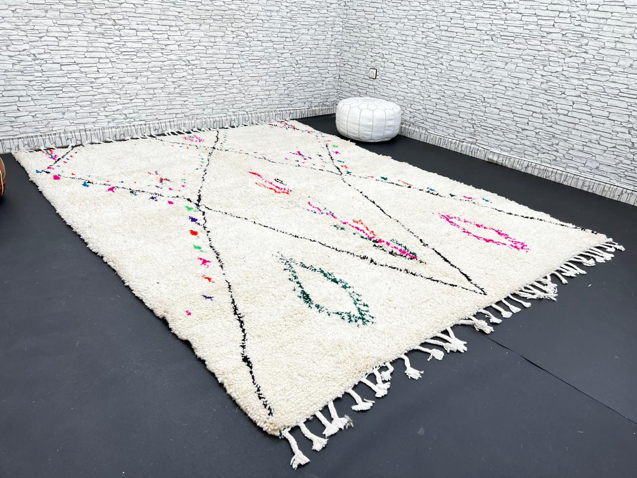 Exclusively available in our collection, this authentic Moroccan rug is a work of art, crafted entirely from 100% natural wool. A perfect fusion of traditional craftsmanship and luxury, each rug is a testament to the skills of Moroccan artisans.