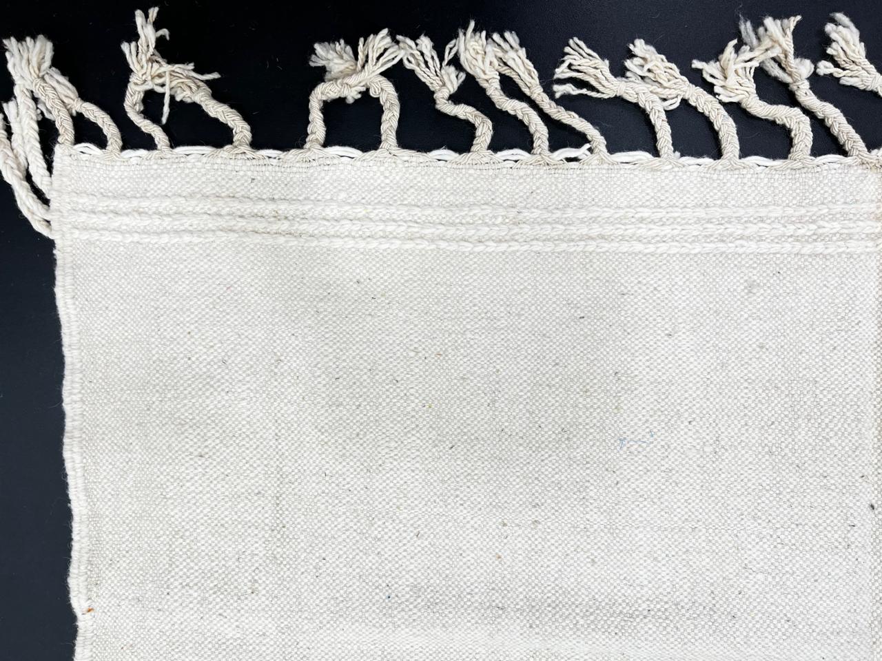 The bold zigzag and sculptural shapes add movement and character, while the soft wool texture ensures comfort and durability. Lightweight yet high-quality, this rug brings a clean, artistic touch to both modern and boho spaces. Finished with traditional fringes, each rug is unique—an original expression of Moroccan weaving heritage.