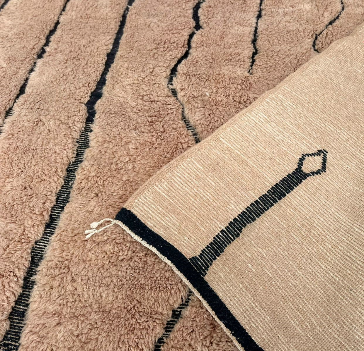 Exclusively available in our collection, this authentic Moroccan rug is a work of art, crafted entirely from 100% natural wool. A perfect fusion of traditional craftsmanship and luxury, each rug is a testament to the skills of Moroccan artisans.