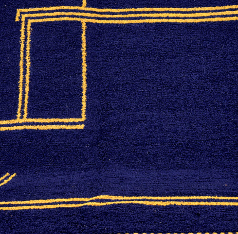The contrast between the rich blue field and the linear golden motifs creates a dynamic, graphic design that instantly elevates any space. Its round shape softens interiors and brings balance to rooms with angular furniture, making it ideal for living rooms, bedrooms, offices, reading corners, or creative spaces.
