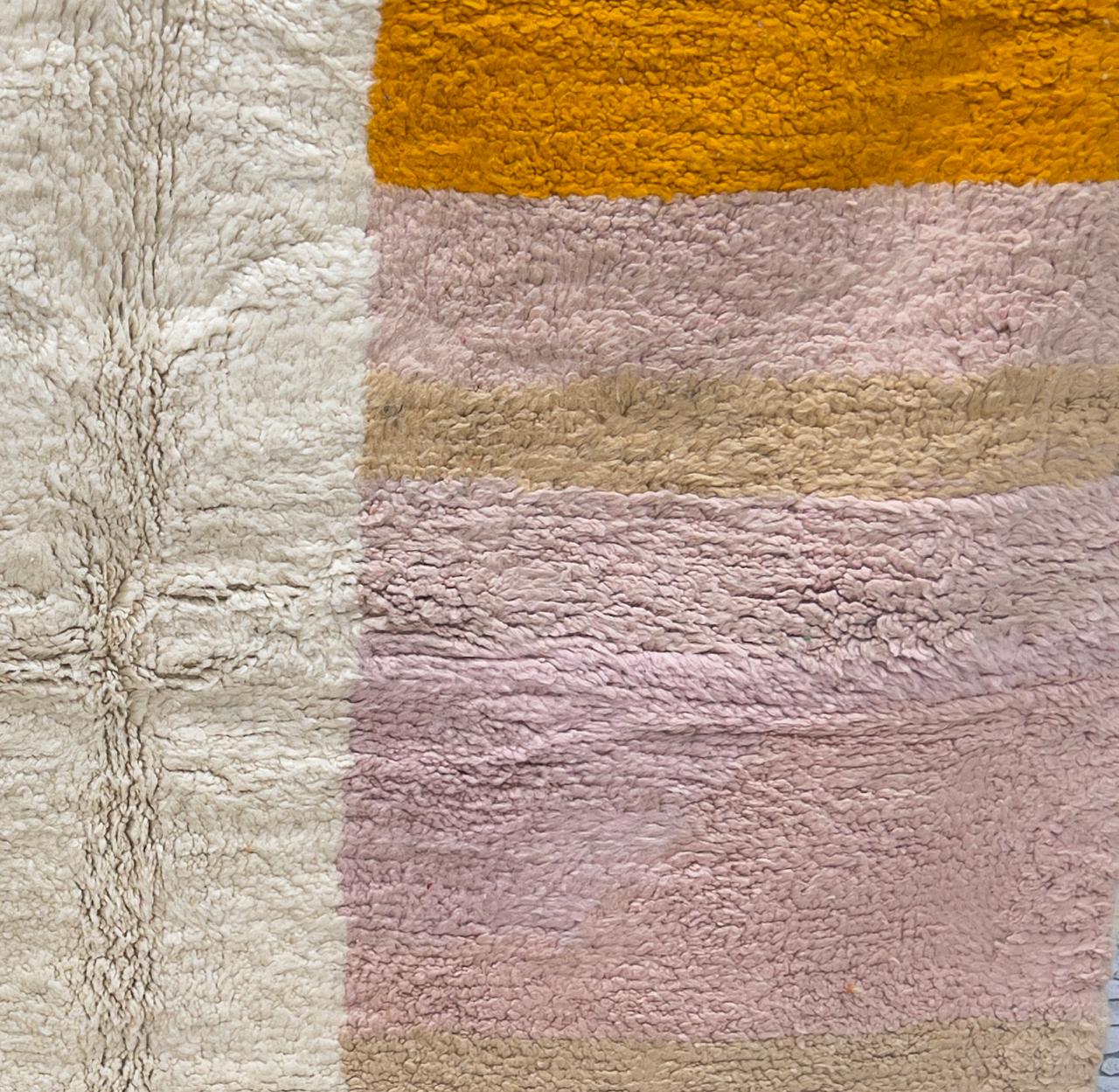 Exclusively available in our collection, this authentic Moroccan rug is a work of art, crafted entirely from 100% natural wool. A perfect fusion of traditional craftsmanship and luxury, each rug is a testament to the skills of Moroccan artisans.