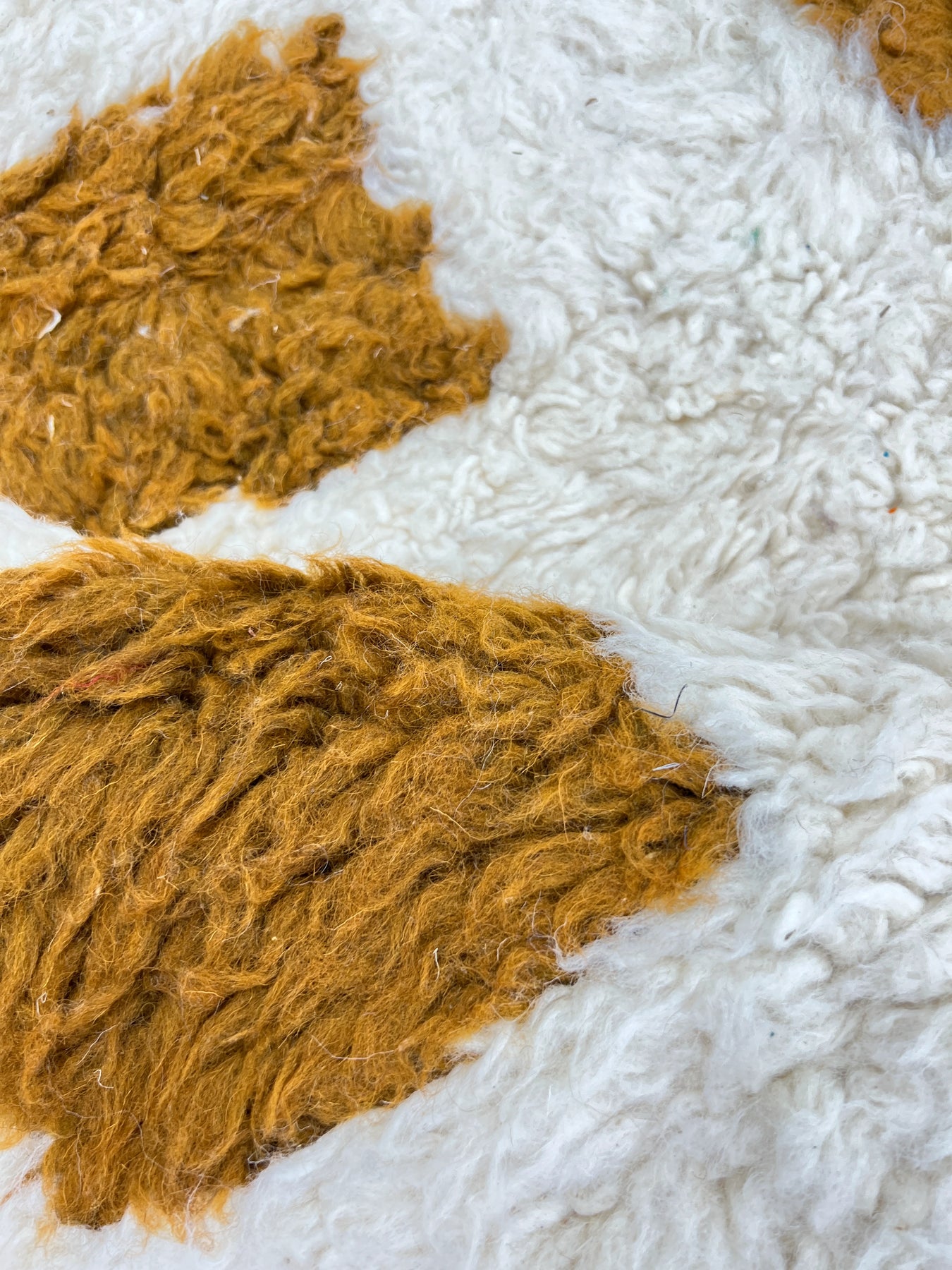 Crafted from 100% natural wool, this Moroccan Berber rug brings both texture and comfort to your space. Its playful checkerboard design adds a touch of boho Moroccan rug style while maintaining a timeless elegance. Each area rug Moroccan piece reflects authentic craftsmanship and sustainable artistry passed down through generations.