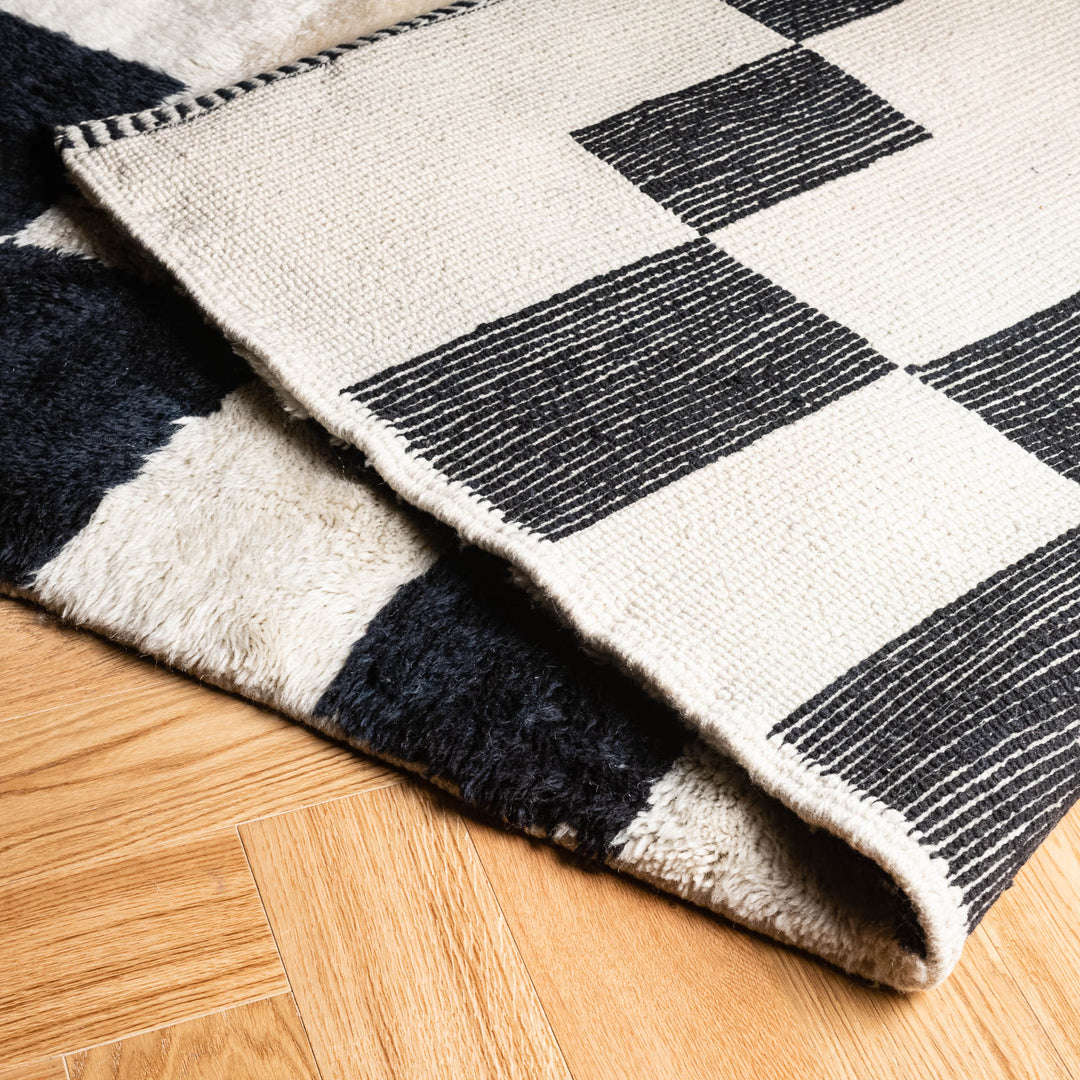 Modern Beni Mrirt Checkerboard Rug in Black and Ivory