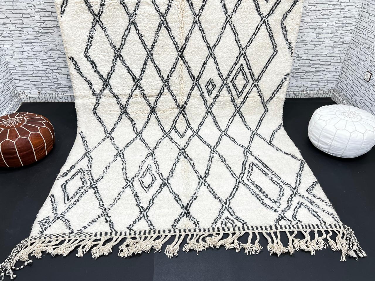 Ivory Black Diamond Beni Ourain Moroccan Wool Rug ā Handmade