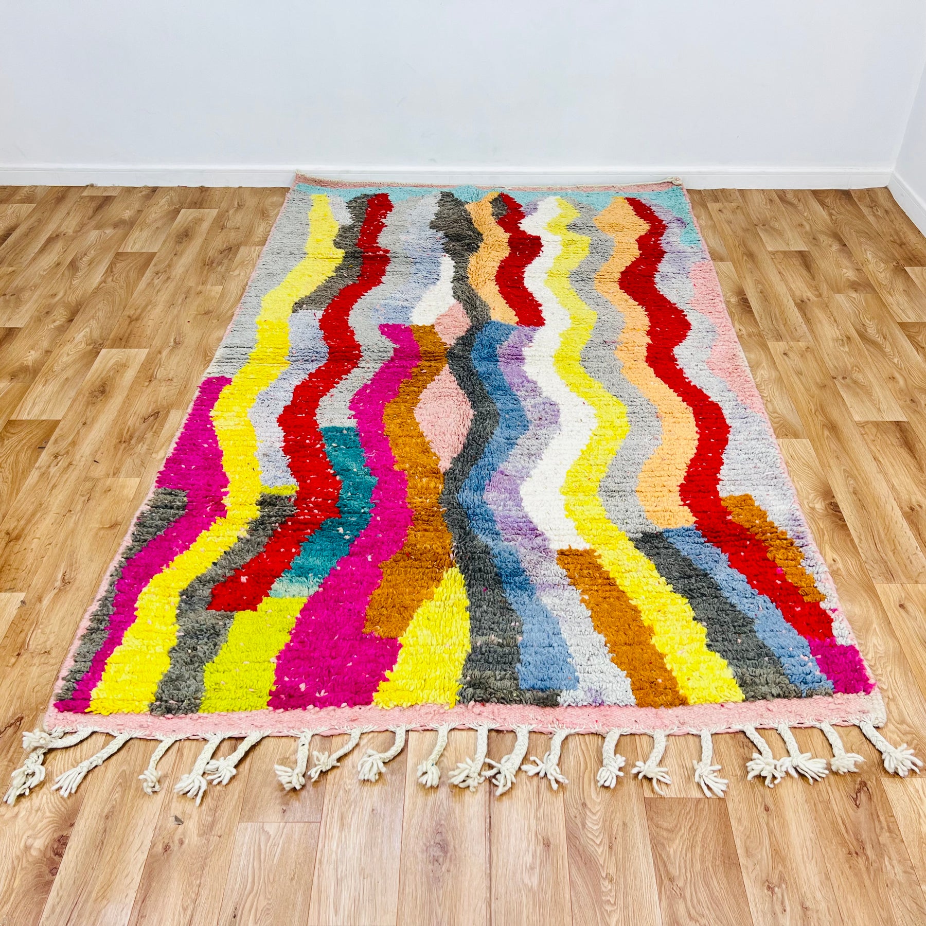 Vintage Moroccan Rug - 8.4 × 5.1 ft – Colorful Wave Pattern