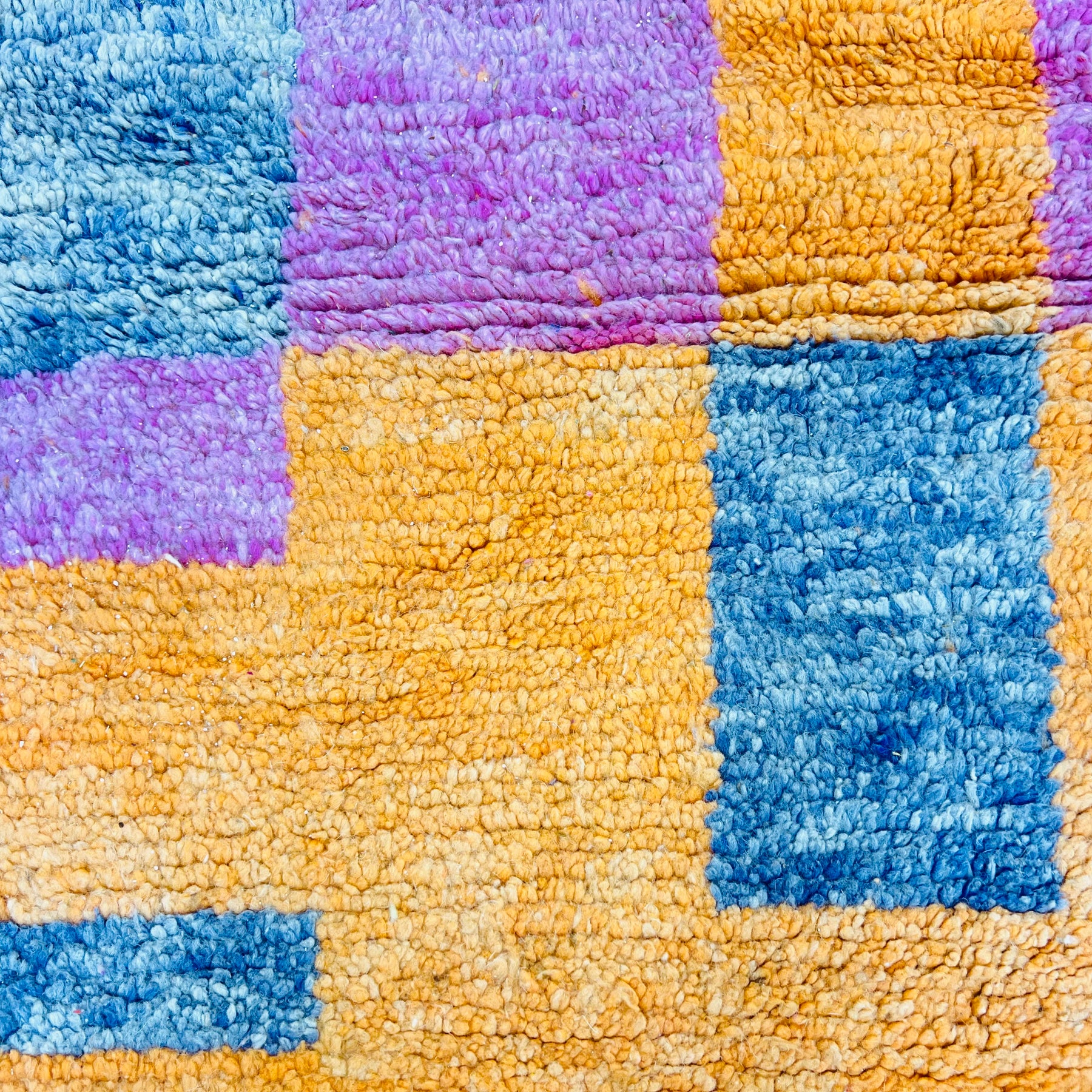 This plush wool rug combines tradition with a modern boho flair, making it a perfect statement piece for living rooms, bedrooms, or creative spaces. The thick, hand-knotted texture adds warmth and softness underfoot while preserving its durability for years to come.