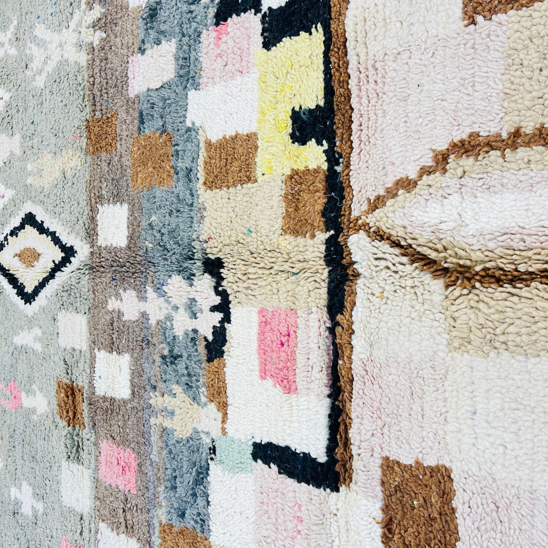 Each rug is a one-of-a-kind piece, woven by skilled Moroccan women using traditional looms and natural wool.