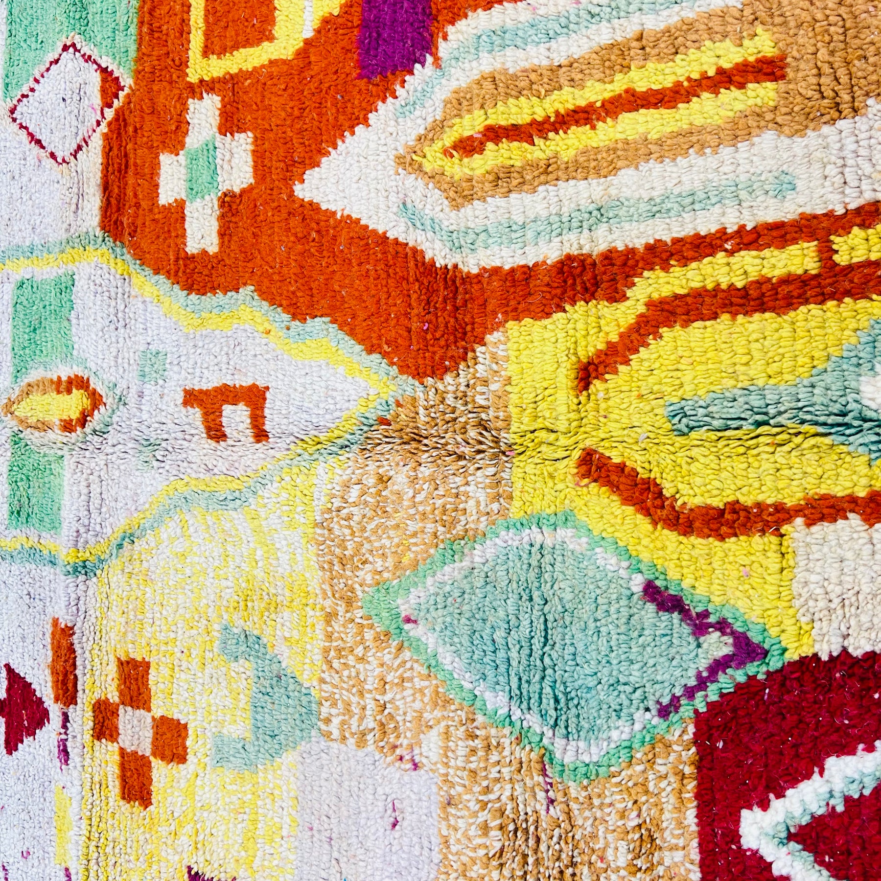 Add bold color and heritage craftsmanship to your home with this unforgettable Moroccan wool rug.